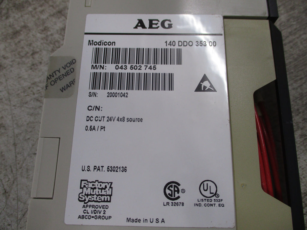AEG Modicon Discrete Output Module 140 DDO 353 00 24VDC 4x8 Source 0.5A/Pt *Cracked Terminal Case* Used LOC 58H3-9