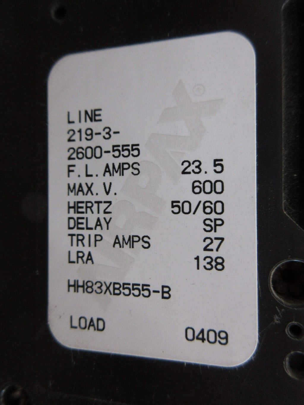 Airpax Circuit Breaker 219-3-2600-555 23.5A 600V 3P Used