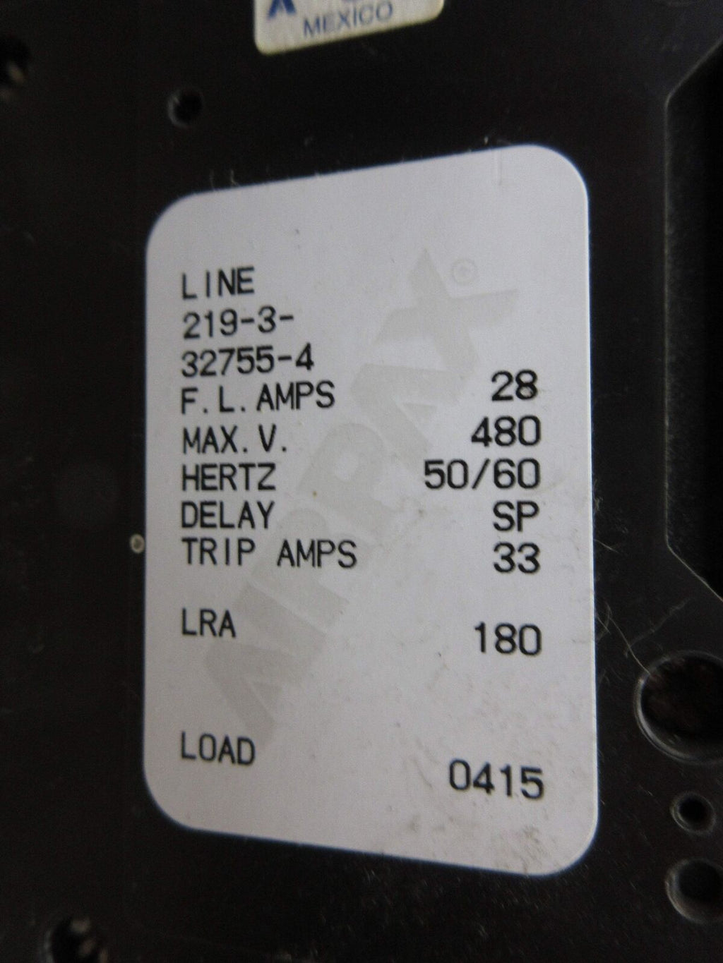 Airpax Circuit Breaker 219-3-32755-4 28A 480V 3P Used