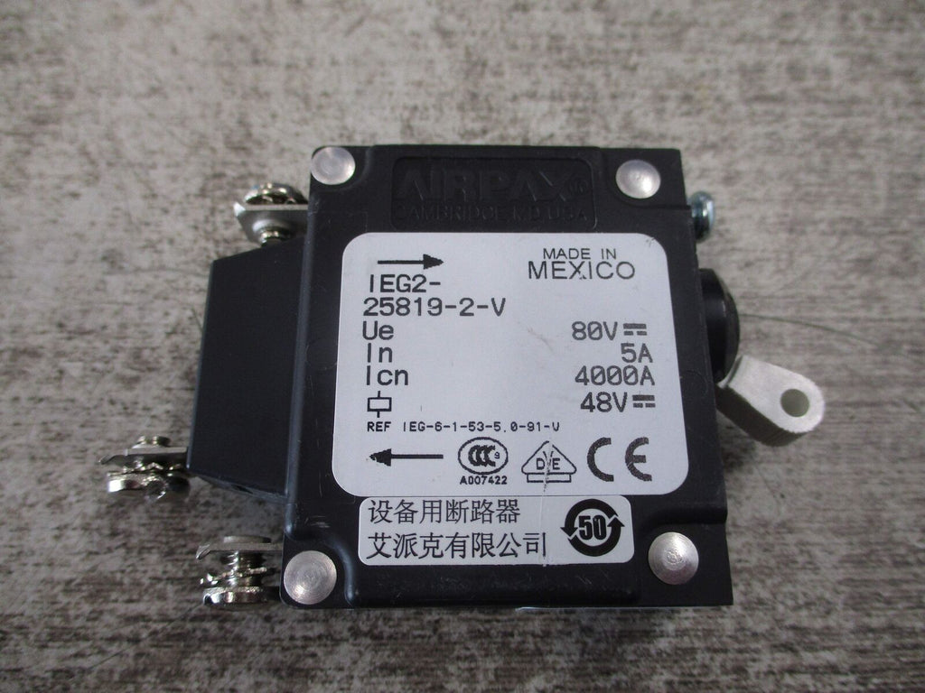 Airpax DC Circuit Breaker IEG2-25819-2-V 5A 80VDC 1P Used_x000D_ Airpax DC Circuit Breaker IEG2-25819-2-V 5A 80VDC 1P Used LOC 60E5-36