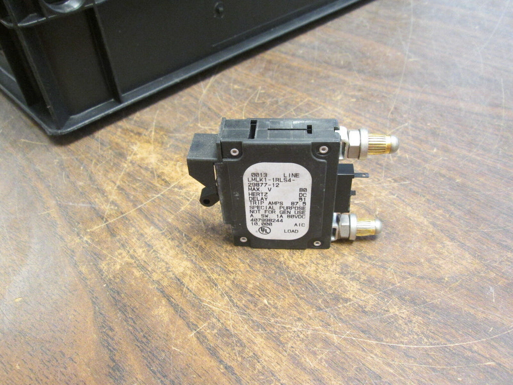 Airpax DC Circuit Breaker LMLK1-1RLS4-29877-12 70A 80VDC 1P Used Condition: UsedBrand: AIRPAXMPN: LMLK1-1RLS4-29877-12 Airpax DC Circuit Breaker LMLK1-1RLS4-29877-12 70A 80VDC 1P Used Airpax DC Circuit Breaker Part #: LMLK1-1RLS4-29877-1270A 80VDC 1P UsedLOC AB6J3-10 / AB8N1 Airpax DC Circuit Breaker Part #: LMLK1-1RLS4-29877-12 70A 80VDC 1P Uséd LOC AB6J3-10 / AB8N1