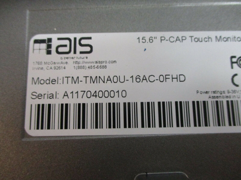 AIS Industrial P-Cap Touch Monitor ITM-TMNA0U-16AC-0FHD Size: 15.6" TFT LCD Used Condition: UsedType: Touch MonitorMPN: ITM-TMNA0U-16AC-0FHDBrand: AISDisplay Screen Size: 15.6 in AIS Industrial P-Cap Touch Monitor ITM-TMNA0U-16AC-0FHD Size: 15.6" TFT LCD Used AIS Industrial P-Cap Touch Monitor Part #: ITM-TMNA0U-16AC-0FHD Size: 15.6" TFT LCD Resolution: 1366 x 768 Used Loc: 18A2-3 AIS Industrial P-Cap Touch Monitor Part #: ITM-TMNA0U-16AC-0FHD Size: 15.6" TFT LCD Resolution: 1366 x 768 Uséd Loc: 18A2-3