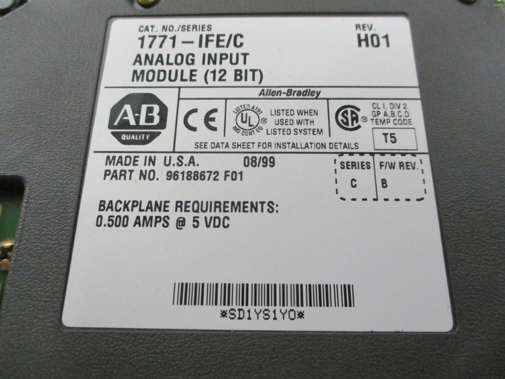 Allen-Bradley 12-Bit Analog Input Module Part #: 1771-IFE/C Ser. C Rev. H01 F/W Rev. B Used LOC 24E3-49