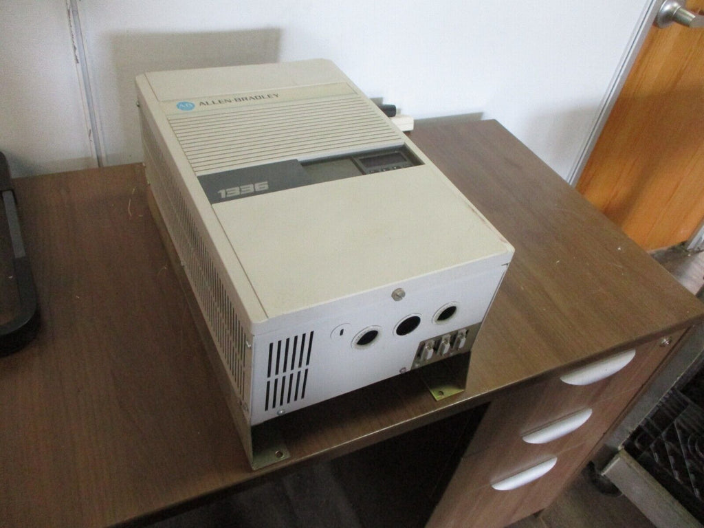 Allen-Bradley 1336 AC Drive 1336-B007-EAD-S1 7.5HP *Cracked Cover* Used Condition: UsedMaximum Load: 7.5 HPInput Voltage: 460 VMPN: 1336-B007-EAD-S1Brand: Allen-BradleyType: General Purpose AC Drive Allen-Bradley 1336 AC Drive 1336-B007-EAD-S1 7.5HP *Cracked Cover* Used Allen-Bradley 1336 AC Drive Part #: 1336-B007-EAD-S1 7.5 HP 3PhInput:460 V13.3 A60 Hz10.6 kVAOutput:460 V13 A60 Hz10.4 kVA*Cracked Cover*Used Loc: AB11-3877 / AB2N3 Allen-Bradley 1336 AC Drive Part #: 1336-B007-EAD-S1 7.5 HP 3Ph Input: 460 V 13.3 A 60 Hz 10.6 kVA Output: 460 V 13 A 60 Hz 10.4 kVA *Cracked Cover* Uséd Loc: AB11-3877 / AB2N3