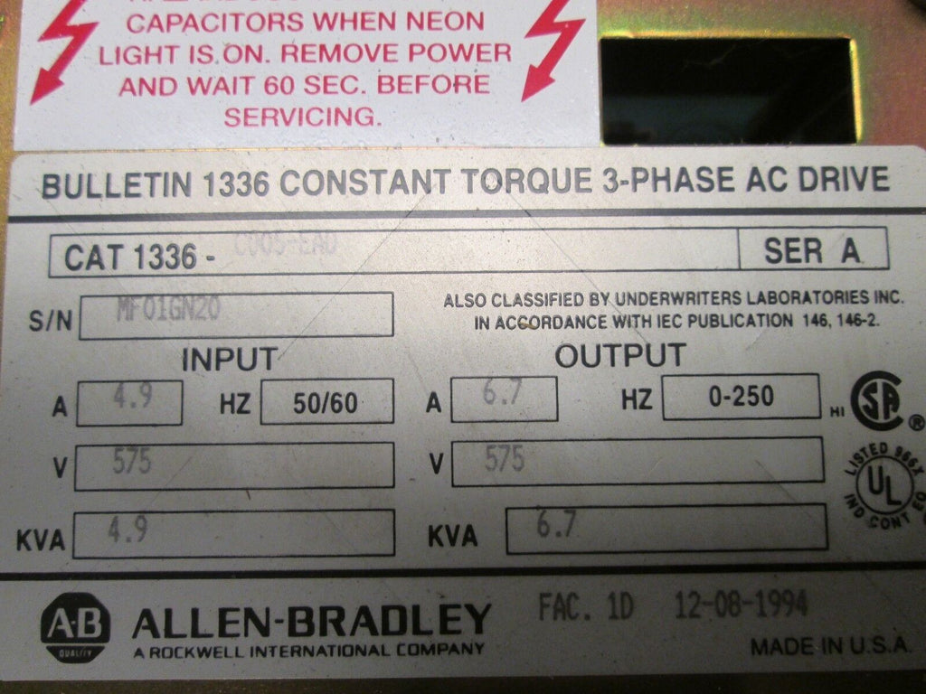 Allen-Bradley 1336 AC Drive 1336-C005-EAD 5HP *Missing Cover* ...