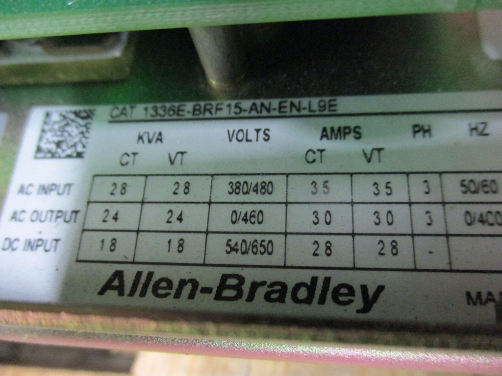 Allen-Bradley 1336 Impact AC Drive 1336E-BRF15-AN-EN-L9E 1.5HP 3PH Used_x000D_ Condition: UsedBrand: Allen-BradleyModel: 1336 Impact AC DriveMPN: 1336E-BRF15-AN-EN-L9E Allen-Bradley 1336 Impact AC Drive 1336E-BRF15-AN-EN-L9E 1.5HP 3PH Used Allen-Bradley 1336 Impact AC Drive Part #: 1336E-BRF15-AN-EN-L9E 1.5HP 3PH Input:380/480V35A50/60HzOutput:0/460V30A0/400HzUsed - No CoverLOC AB6C2-3 Allen-Bradley 1336 Impact AC Drive Part #: 1336E-BRF15-AN-EN-L9E 1.5HP 3PH Input: 380/480V 35A 50/60Hz Output: 0/460V 30A 0/400Hz Uséd - No Cover LOC AB6C2-3