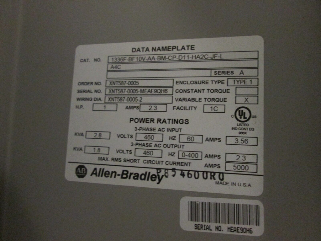Allen-Bradley 1336 Plus II AC Drive w/ Bypass 1336F-BRF10-AN-E...