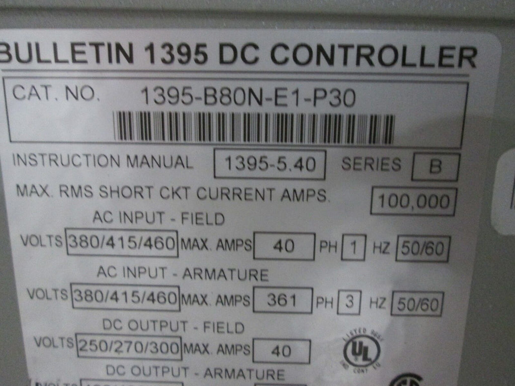Allen-Bradley 1395 DC Drive 1395-B80N-E1-P30 250HP Used Condit...