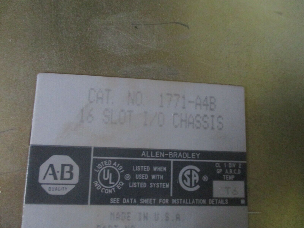 Allen-Bradley 16-Slot I/O Chassis 1771-A4B 5V 24A Used_x000D_ Condition: UsedMPN: 1771-A4BBrand: Allen-Bradley Allen-Bradley 16-Slot I/O Chassis 1771-A4B 5V 24A Used Allen-Bradley 16-Slot I/O Chassis Part #: 1771-A4B 5VDC24AUsedLOC AB11-688 / AB9K2 Allen-Bradley 16-Slot I/O Chassis Part #: 1771-A4B 5VDC 24A Uséd LOC AB11-688 / AB9K2