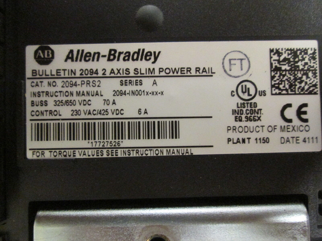 Allen-Bradley 2-Axis Slim Power Rail 2094-PRS2 Buss:325/650VDC 70A Used_x000D_ Condition: UsedBrand: Allen-BradleyMPN: 2094-PRS2 Allen-Bradley 2-Axis Slim Power Rail 2094-PRS2 Buss:325/650VDC 70A Used Allen-Bradley 2-Axis Slim Power Rail Part #: 2094-PRS2 Buss: 325/650VDC 70A Control:230VAC/425VDC6AUsedLOC 6E4-16 Allen-Bradley 2-Axis Slim Power Rail Part #: 2094-PRS2 Buss: 325/650VDC 70A Control: 230VAC/425VDC 6A Uséd LOC 6E4-16