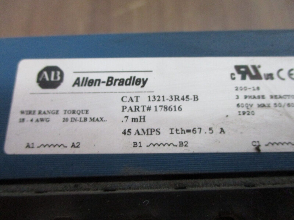 Allen-Bradley 3Ph Line Reactor 1321-3R45-B 0.7mH 45A 600V 50/60Hz Used_x000D_ Condition: UsedBrand: Allen-BradleyPrimary Voltage Rating (AC): 600 VType: General Purpose TransformerPrimary Current Rating: 45 AMPN: 1321-3R45-BSecondary Current Rating: 45 ATurns Ratio: 6:00 Allen-Bradley 3Ph Line Reactor 1321-3R45-B 0.7mH 45A 600V 50/60Hz Used Allen-Bradley 3Ph Line Reactor Part #: 1321-3R45-B 0.7mH 45 A 600 V 50/60 Hz Used Loc: AB11-3972 / AB39D4 / AB2D2 / AB8F2 / AB7M2 / AB7K2 / (AB38E2) Allen-Bradley 3Ph Line Reactor Part #: 1321-3R45-B 0.7mH 45 A 600 V 50/60 Hz Uséd Loc: AB11-3972 / AB39D4 / AB2D2 / AB8F2 / AB7M2 / AB7K2 / (AB38E2)