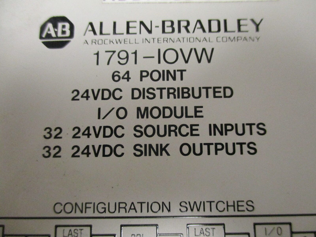 Allen-Bradley 64-Point I/O Module 1791-IOVW 24VDC Distributed Used_x000D_ Condition: UsedBrand: Allen-BradleyMPN: 1791-IOVW Allen-Bradley 64-Point I/O Module 1791-IOVW 24VDC Distributed Used Allen-Bradley 64-Point I/O ModulePart #: 1791-IOVW 24VDC Distributed 32 Source Inputs32 Sink OutputsUsedLOC 20K2-19 Allen-Bradley 64-Point I/O Module Part #: 1791-IOVW 24VDC Distributed 32 Source Inputs 32 Sink Outputs Uséd LOC 20K2-60