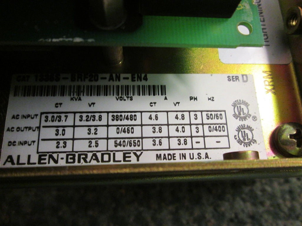 Allen-Bradley AC Drive 1336S-BRF20-AN-EN4-L6 2HP 3Ph Used Allen-Bradley AC Drive 1336S-BRF20-AN-EN4-L6 2HP 3Ph Input:3.0 / 3.7KVA380/480V4.6A50/60HzOutput:3.0KVA0/460V3.8A0/400HzUsedLOC# AB4H2-1 / AB4I2 Allen-Bradley AC Drive 1336S-BRF20-AN-EN4-L6 2HP 3Ph Input:3.0 / 3.7KVA380/480V4.6A50/60HzOutput:3.0KVA0/460V3.8A0/400HzUsédLOC# AB4H2-1 / AB4I2