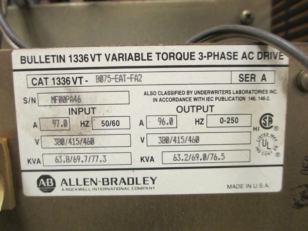 Allen-Bradley AC Drive 1336VT-B075-EAT-FA2, 75HP 380V / 460V 0-250Hz Used
