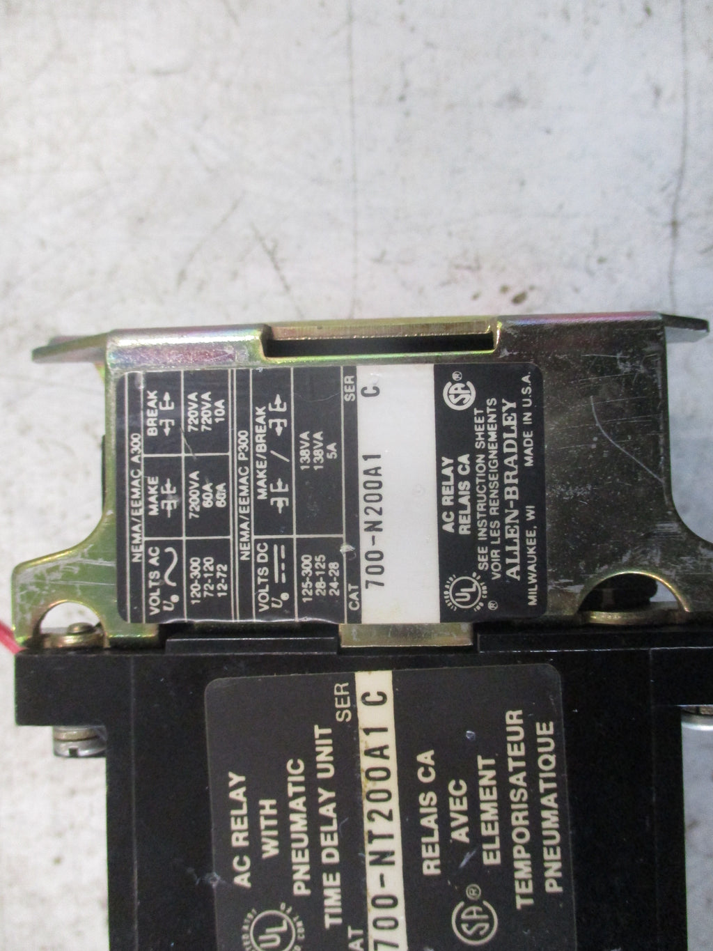 Allen-Bradley AC Relay W/Pneumatic Time Delay unit 700-NT200A1 Ser. C 120V Coil Used LOC 56H3-27