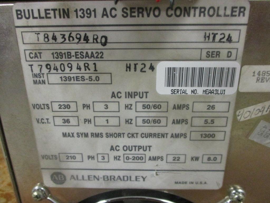 Allen-Bradley AC Servo Controller 1391B-ESAA22 Ser. D Used
