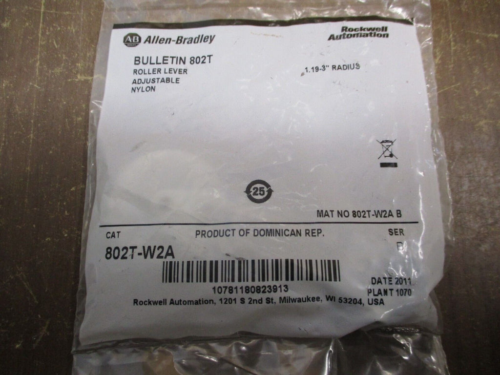 Allen-Bradley Adjustable Nylon Roller Lever 802T-W2A Ser. B 1.19-3" Radius_x000D_ Condition: New – Open boxBrand: Allen-BradleyOperation Method: On/Off Allen-Bradley Adjustable Nylon Roller Lever 802T-W2A Ser. B 1.19-3" Radius Allen-Bradley Adjustable Nylon Roller Lever Part #: 802T-W2A Ser. B 1.19-3" Radius New SurplusLoc: 28J3-27 Allen-Bradley Adjustable Nylon Roller Lever Part #: 802T-W2A Ser. B 1.19-3" Radius New Surplus Loc: 28J3-27