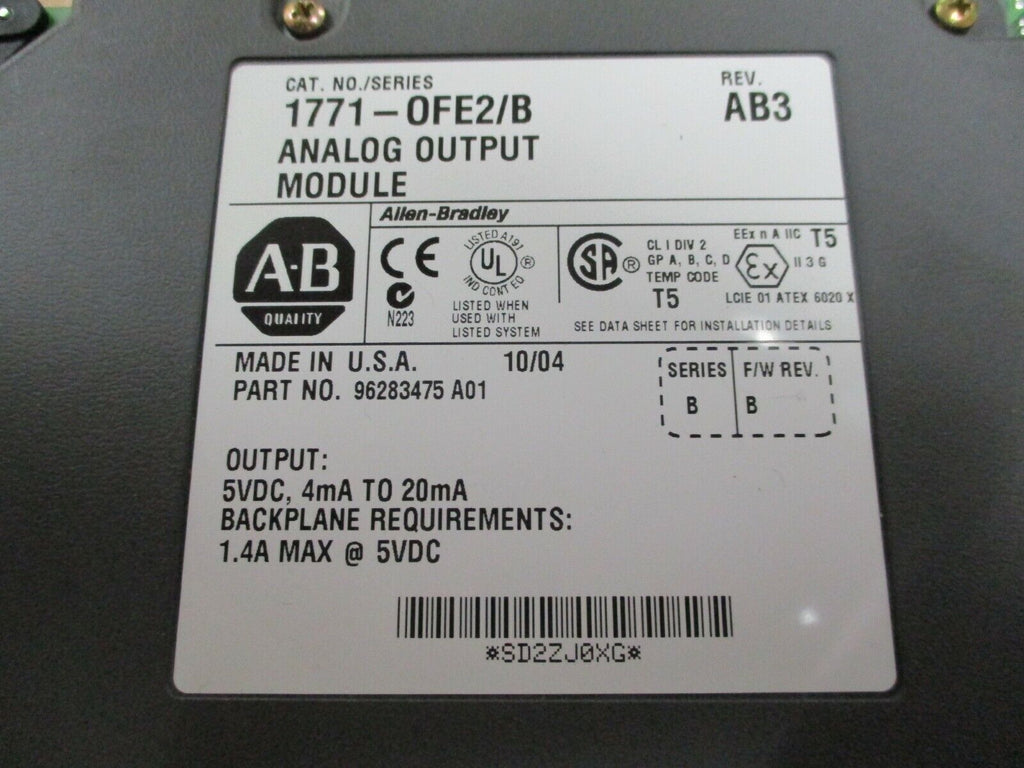 Allen-Bradley Analog Output Module 1771-OFE2/B Ser. B Rev. AB3 F/W Rev. B Used_x000D_ Condition: UsedMPN: 1771-OFE2/BBrand: Allen-Bradley Allen-Bradley Analog Output Module 1771-OFE2/B Ser. B Rev. AB3 F/W Rev. B Used Allen-Bradley Analog Output Module Part #: 1771-OFE2/B Ser. B Rev. AB3 F/W Rev. B UsedLOC 22A3-29 Allen-Bradley Analog Output Module Part #: 1771-OFE2/B Ser. B Rev. AB3 F/W Rev. B Uséd LOC 22A3-29