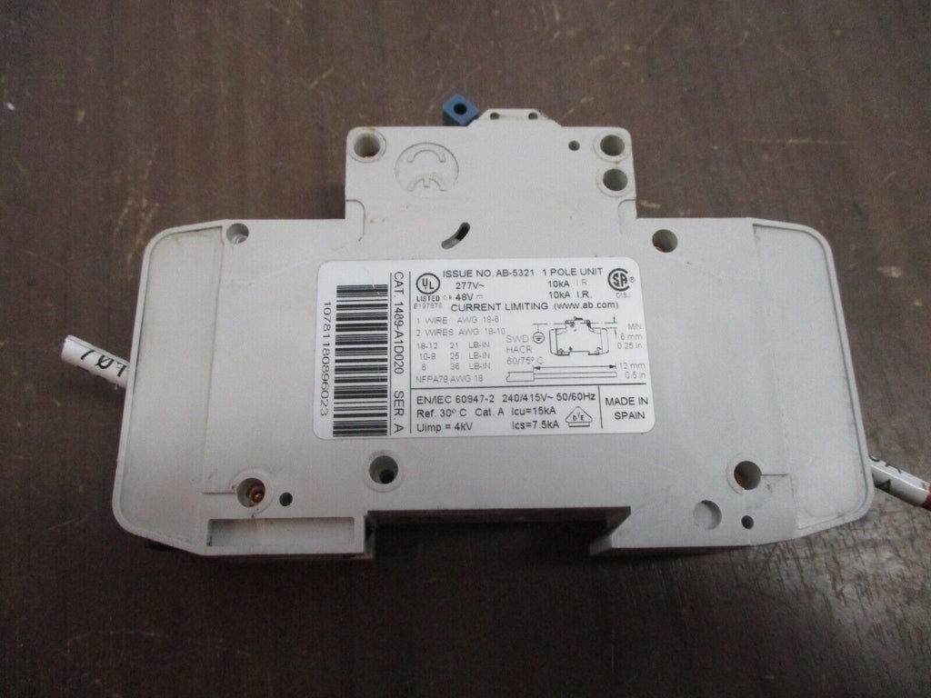 Allen-Bradley Circuit Breaker 1489-A1D020 2A 277V 1P *Lot of 2* Used