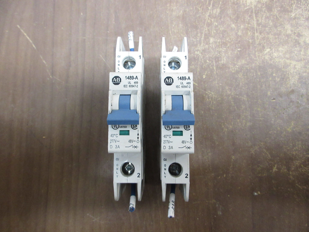 Allen-Bradley Circuit Breaker 1489-A1D030 Ser. A 3A 277V 1P *Lot of 2* Used