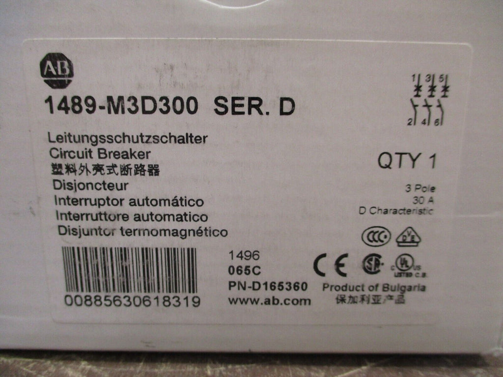 Allen-Bradley Circuit Breaker 1489-M3D300 Ser. D 30A 240V 3P New Surplus