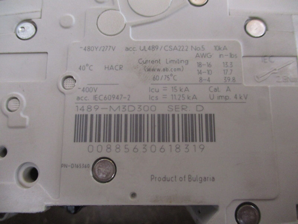 Allen-Bradley Circuit Breaker 1489-M3D300 Ser. D 30A 240V 3P New Surplus_x000D_ Condition: New – Open boxBrand: Allen-BradleyColor: WhiteCurrent Rating: 16-30 AMPN: 1489-M3D300Maximum Amperage: 30 ANumber of Poles: 3Operation Method: On/OffVoltage: 240 V Allen-Bradley Circuit Breaker 1489-M3D300 Ser. D 30A 240V 3P New Surplus Allen-Bradley Circuit Breaker Part #: 1489-M3D300 Ser. D 30 A 240 V 3P New Surplus Loc: 28A3-27 Allen-Bradley Circuit Breaker Part #: 1489-M3D300 Ser. D 30 A 240 V 3P New Surplus Loc: 28A3-27