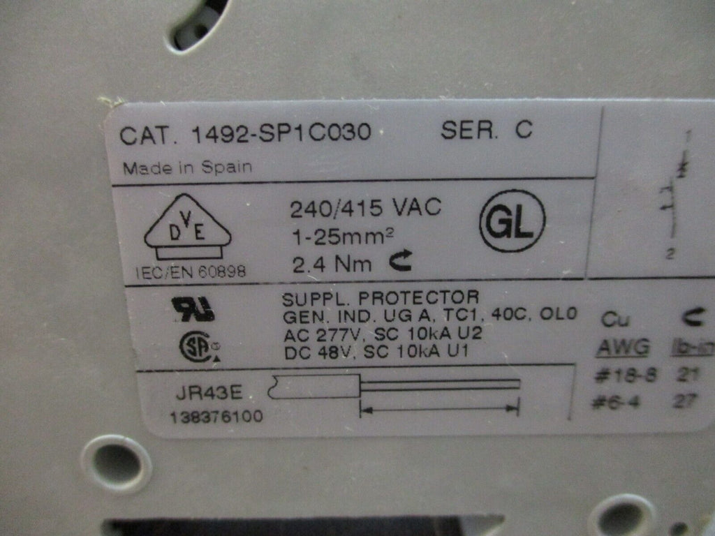 Allen-Bradley Circuit Breaker 1492-SP1C030 Ser. C 3A 277V *Lot...