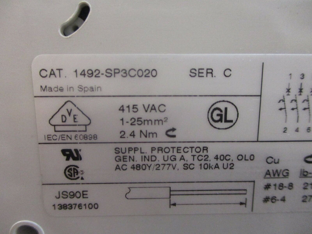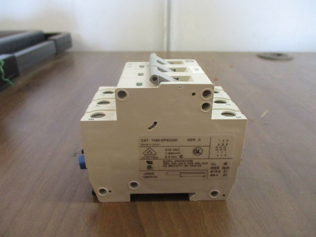 Allen-Bradley Circuit Breaker Part #: 1492-SP3C020 Ser. C 2 A 480Y/277 V 3P Used Loc: 13D5-8 / 18I3 // AB11-3653/(AB3N4) / AB4I1 / AB2H2 / CR6A3