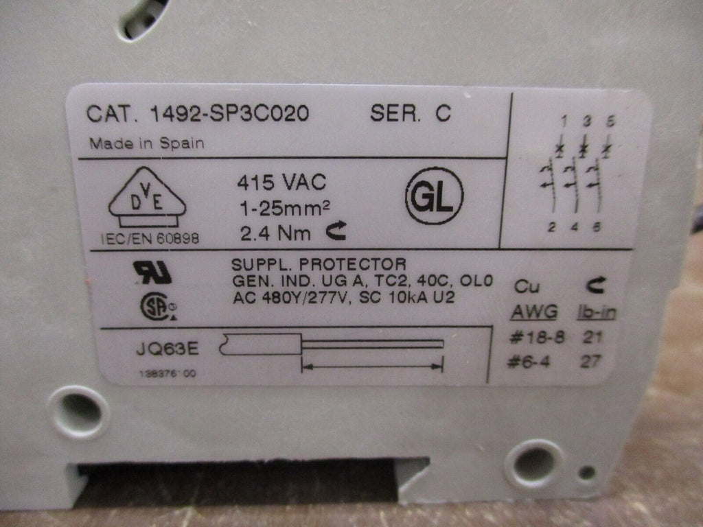 Allen-Bradley Circuit Breaker 1492-SP3C020 Ser. C 2A 480Y/277V...
