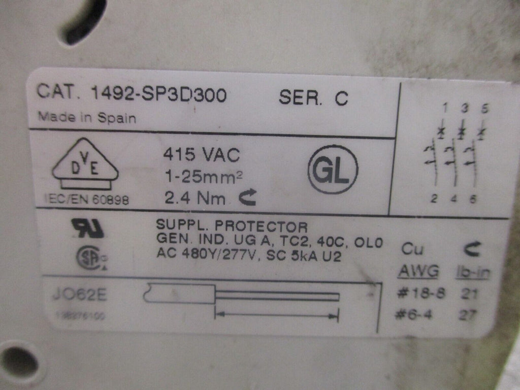 Allen-Bradley Circuit Breaker 1492-SP3D300 Ser. C 30A 480Y/277V 3P Used_x000D_ Condition: UsedBrand: Allen-BradleyColor: WhiteCurrent Rating: 16-30 AMPN: 1492-SP3D300Maximum Amperage: 30 ANumber of Poles: 3Voltage: 201-250 V Allen-Bradley Circuit Breaker 1492-SP3D300 Ser. C 30A 480Y/277V 3P Used Allen-Bradley Circuit Breaker Part #: 1492-SP3D300 Ser. C 30A 480Y/277V 3P UsedLOC: 28G3-38 Allen-Bradley Circuit Breaker Part #: 1492-SP3D300 Ser. C 30A 480Y/277V 3P Uséd LOC: 28G3-38