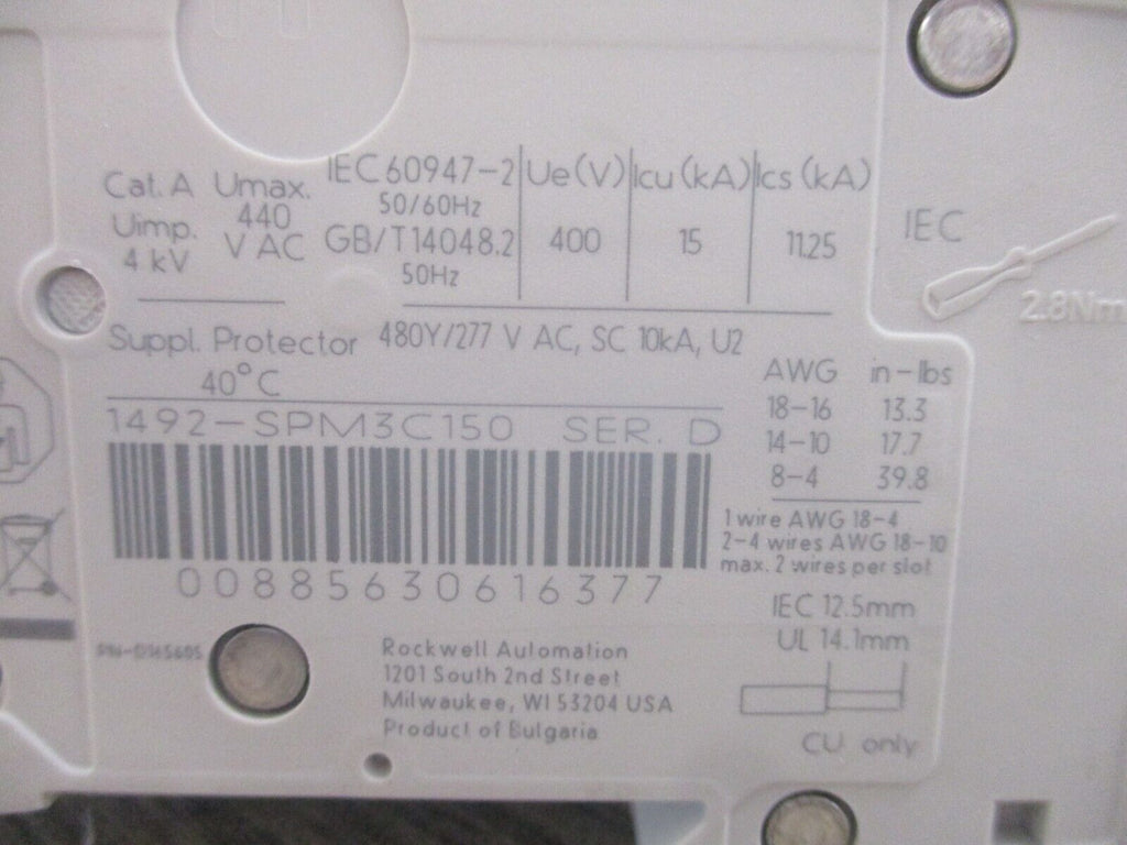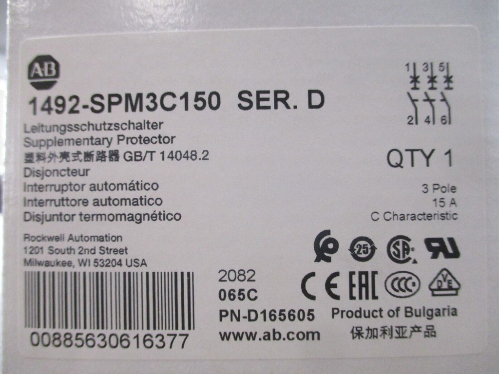 Allen-Bradley Circuit Breaker 1492-SPM3C150 Ser. D 15A 3P New ...