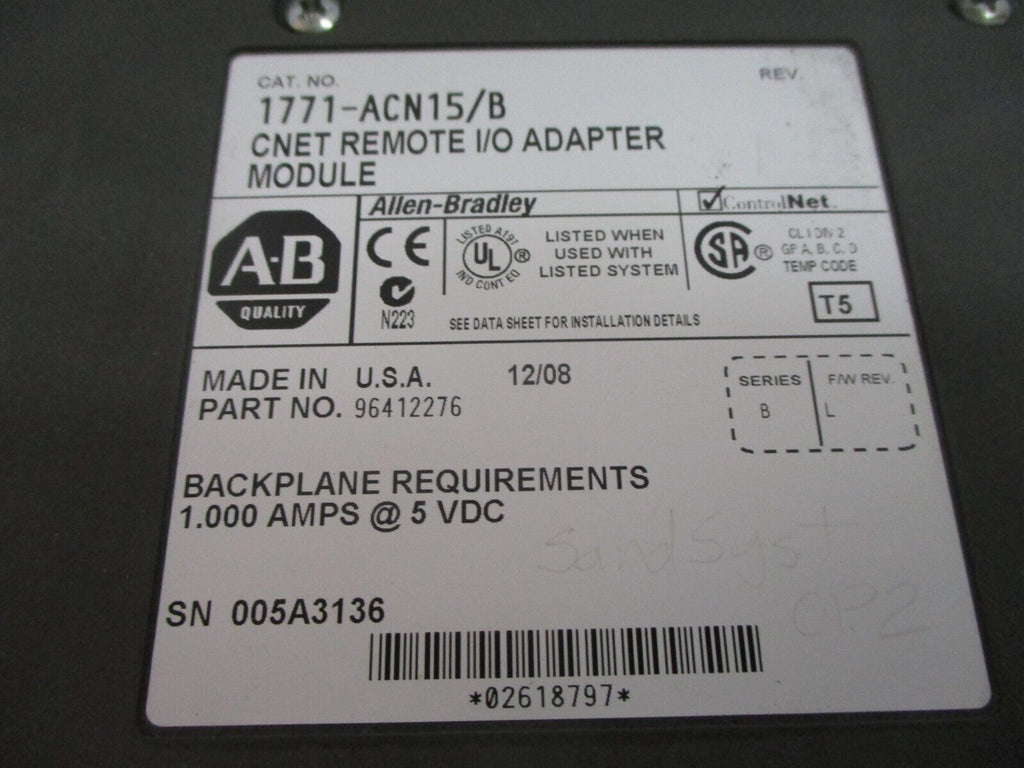 Allen-Bradley CNET Remote I/O Adapter Module 1771-ACN15 Ser. B F/W. Rev. L Used