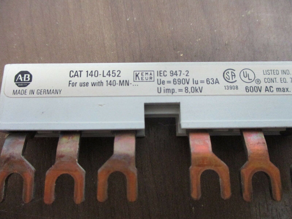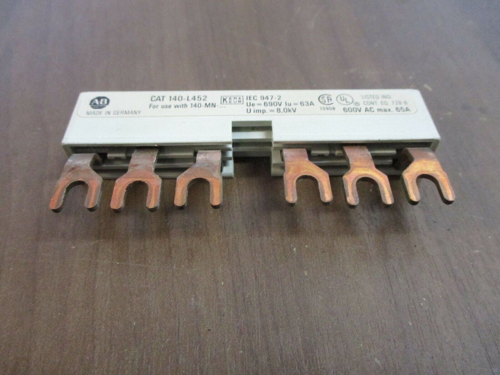 Allen-Bradley Commoning Link 140-L452 65A 600V *Lot of 4* Used Condition: UsedCountry/Region of Manufacture: GermanyMPN: 140-L452Brand: Allen-BradleyType: Commoning Link Allen-Bradley Commoning Link 140-L452 65A 600V *Lot of 4* Used Allen-Bradley Commoning Link Part #: 140-L452 65 A 600 V *Lot of 4* Used Loc: 18F3-32 Allen-Bradley Commoning Link Part #: 140-L452 65 A 600 V *Lot of 4* Uséd Loc: 18F3-32