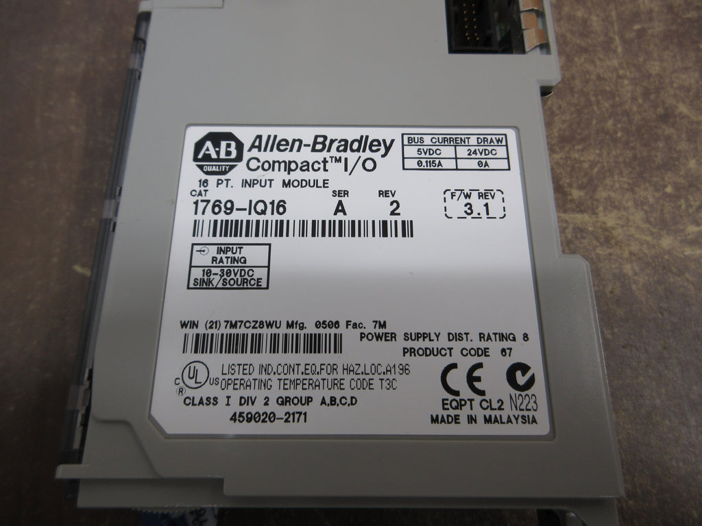 Allen-Bradley Compact I/O Input Module 1769-IQ16 Ser. A Rev. 2 F/W Rev. 3.1 Used