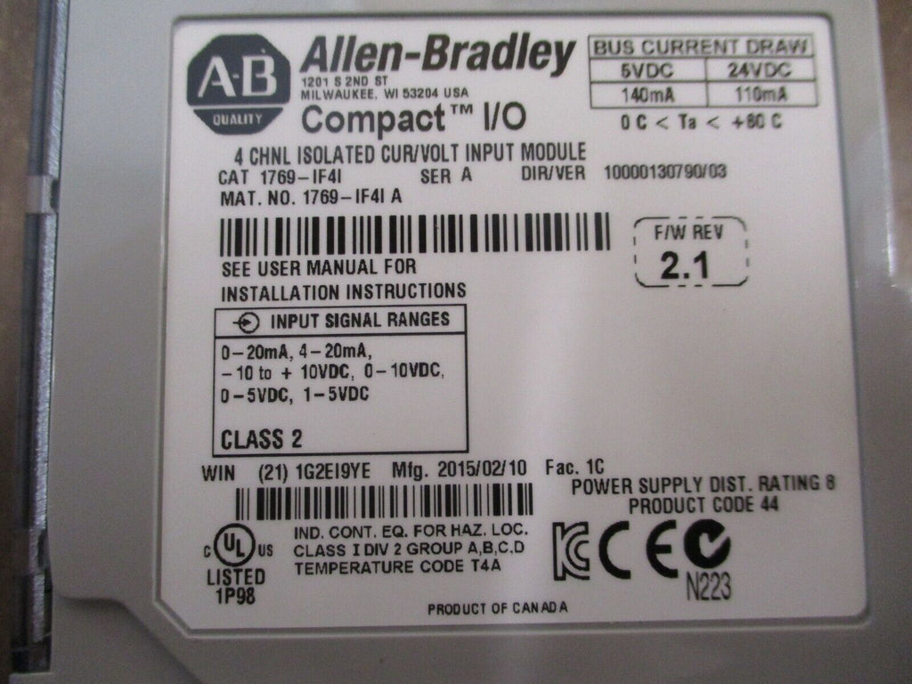 Allen-Bradley Compact I/O Isolated Input Module 1769-IF4I Ser. A F/W Rev. 2.1
