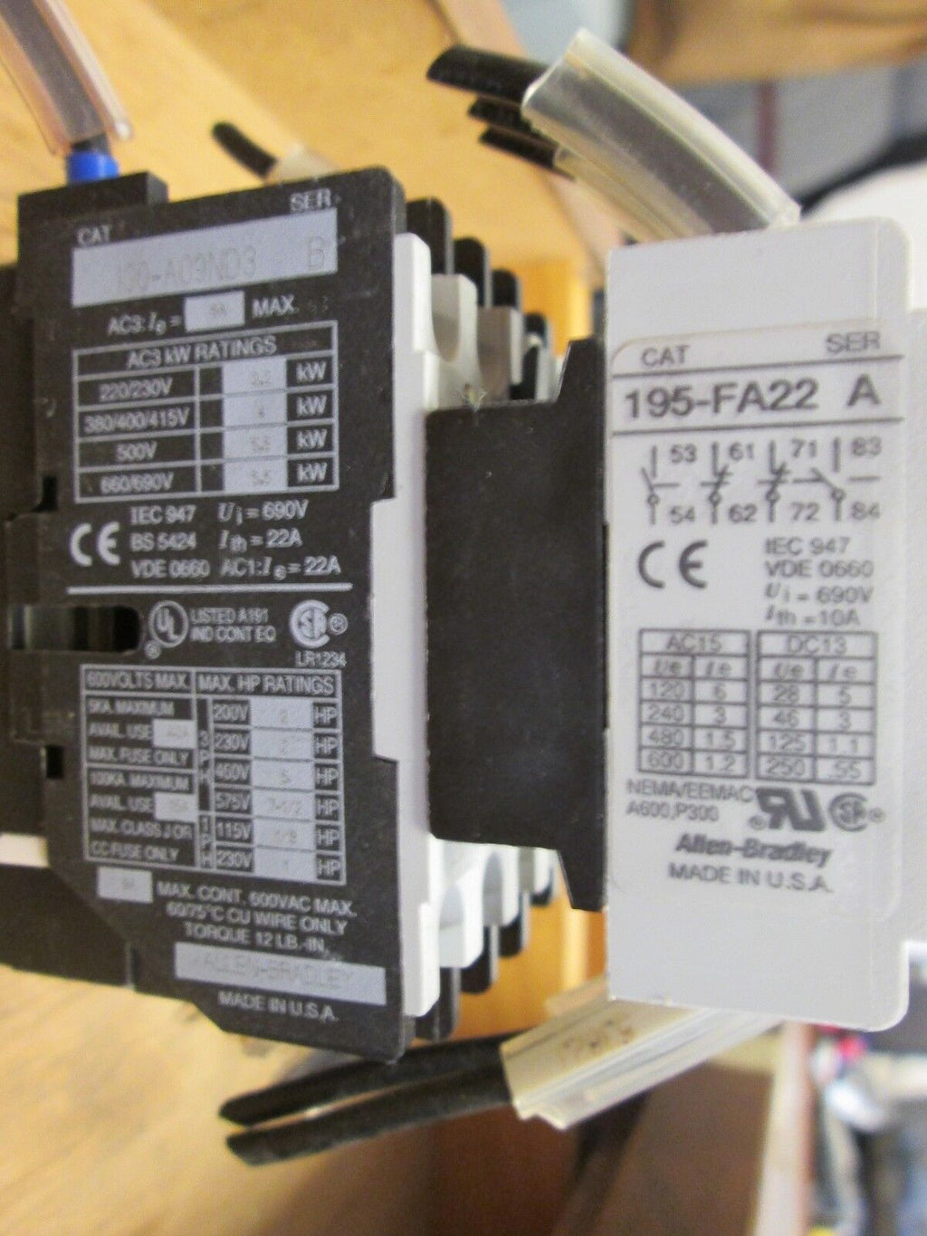 Allen-Bradley Contactor 100-A09ND3 195-FA22 Contact Block 9A 6...