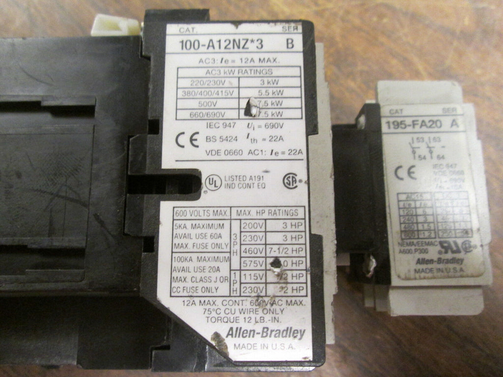 Allen-Bradley Contactor 100-A12NZ*3 12A 600V 24VDC Coil Used_x000D_ Condition: UsedBrand: Allen-BradleyMPN: 100-A12NZ*3 Allen-Bradley Contactor 100-A12NZ*3 12A 600V 24VDC Coil Used Allen-Bradley Contactor Part #: 100-A12NZ*3 12A 600V 24VDC Coil UsedLOC 15F3-10 Allen-Bradley Contactor Part #: 100-A12NZ*3 12A 600V 24VDC Coil Uséd LOC 15F3-10