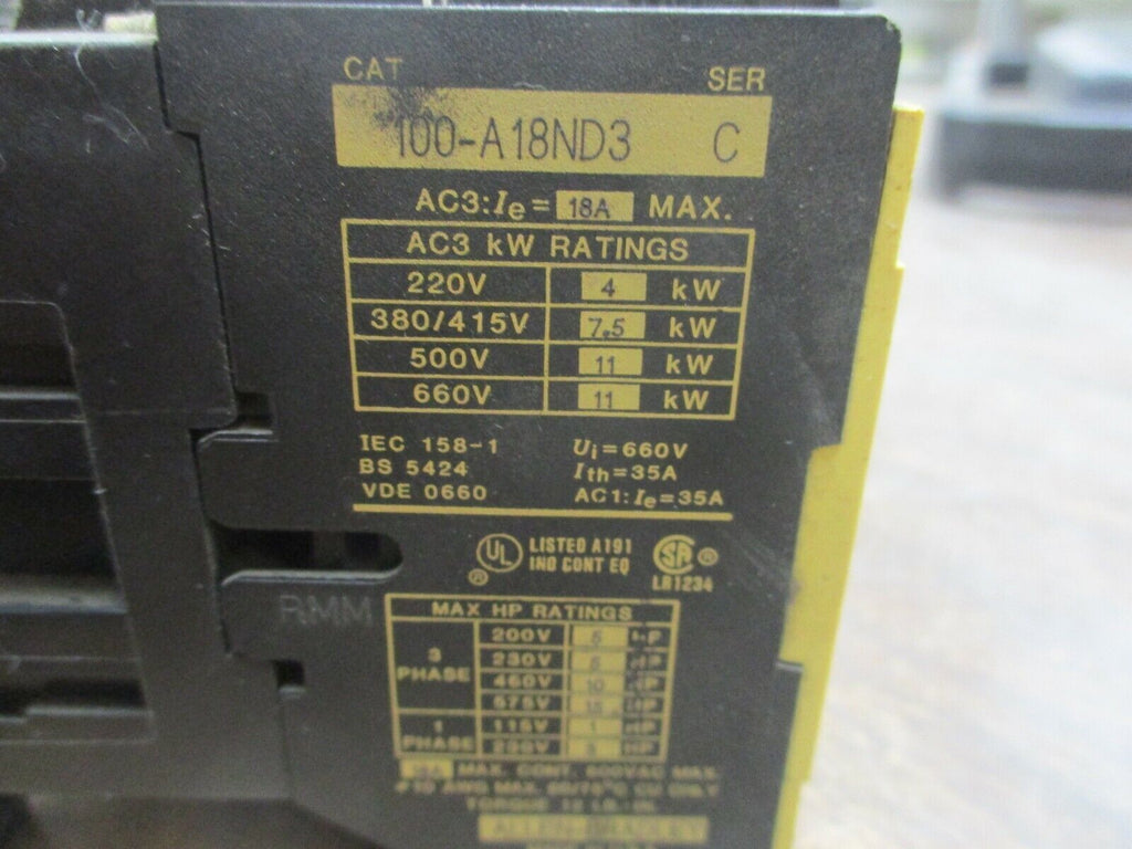 Allen-Bradley Contactor 100-A18ND3 120V Coil 18A 600V Used