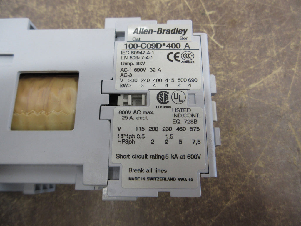 Allen-Bradley Contactor Part #: 100-C09D*400 Ser. A 24 VDC ...