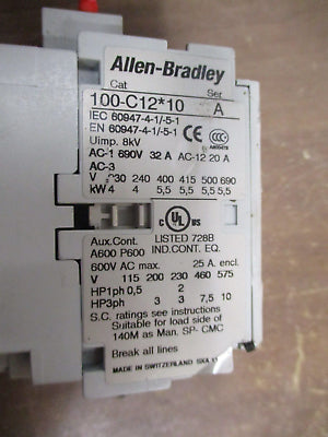Allen-Bradley Contactor 100-C12*10 24V Coil 25A 600V *Chipped Side* Used_x000D_ Condition: UsedBrand: Allen-BradleyType: Contactor CoilModel: Allen-Bradley Contactor 100-C12MPN: 100-C12*10 Allen-Bradley Contactor 100-C12*10 24V Coil 25A 600V *Chipped Side* Used Allen-Bradley Contactor Part #: 100-C12*10 24 V Coil 25 A 600 V *Chipped Side* Used Loc: 27E3-29 Allen-Bradley Contactor Part #: 100-C12*10 24 V Coil 25 A 600 V *Chipped Side* Uséd Loc: 27E3-29