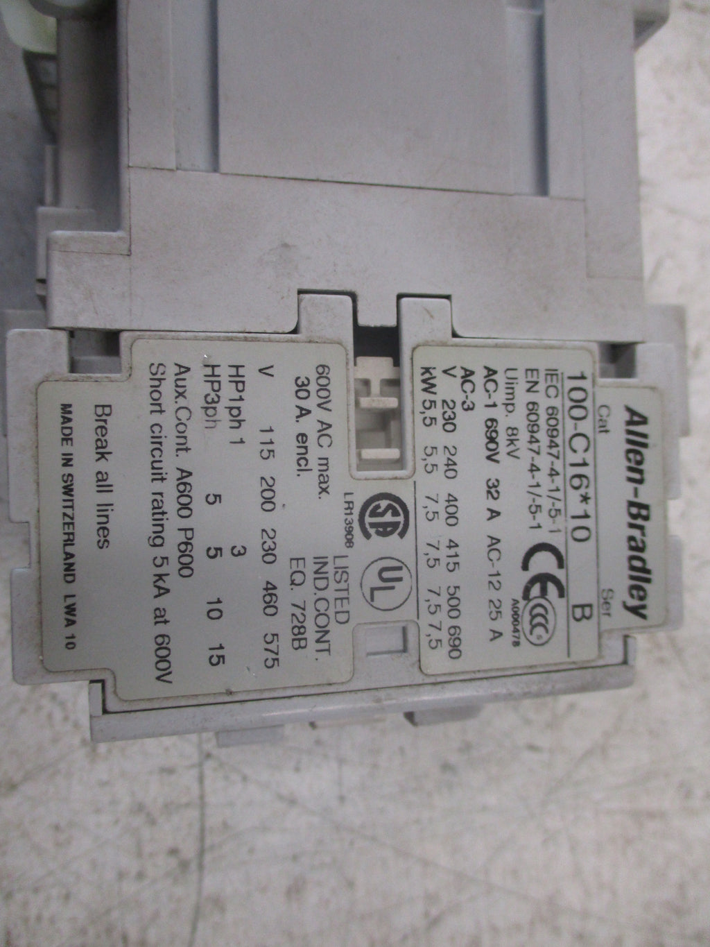Allen-Bradley Contactor 100-C16*10 Ser. B 24V Coil 30A 6...