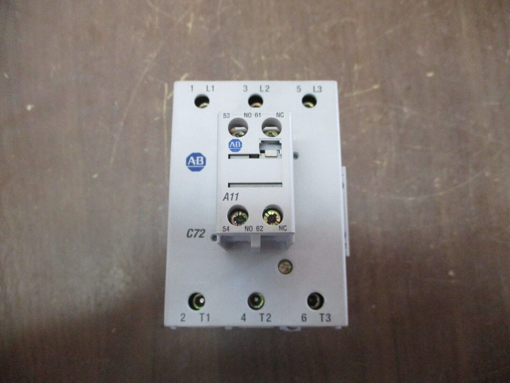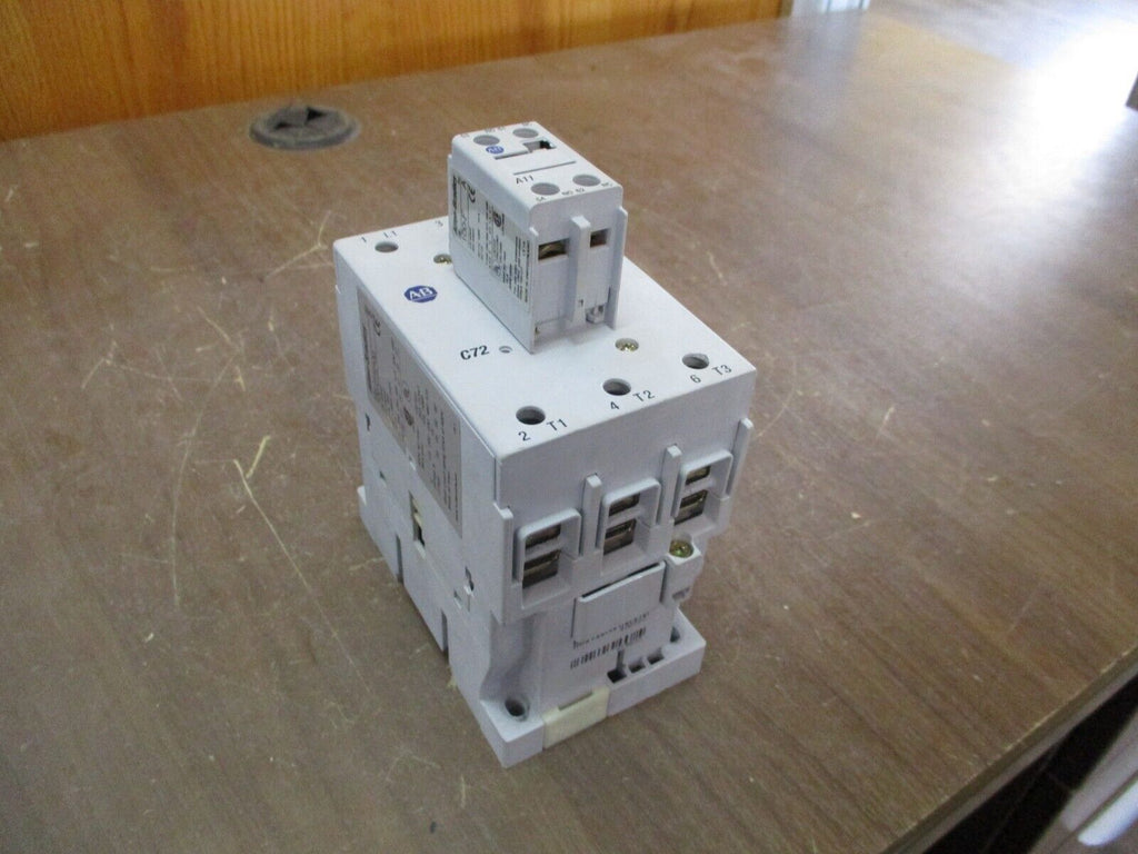 Allen-Bradley Contactor Part #: 100-C72*00 Ser. B 120 V Coil 90 A 600 V w/ Aux Contact Block w/ Aux Contact Used Loc: 19D5-53- Part #: 100-C72*00