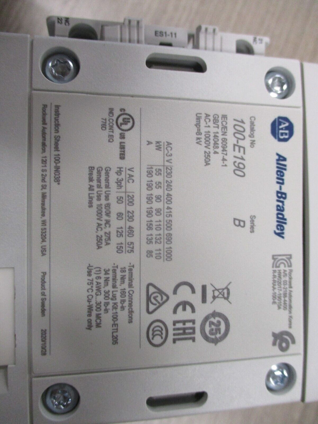 Allen-Bradley Contactor 100-E190KD11 Ser. B 100-250v AC/DC Coil 190A New Surplus