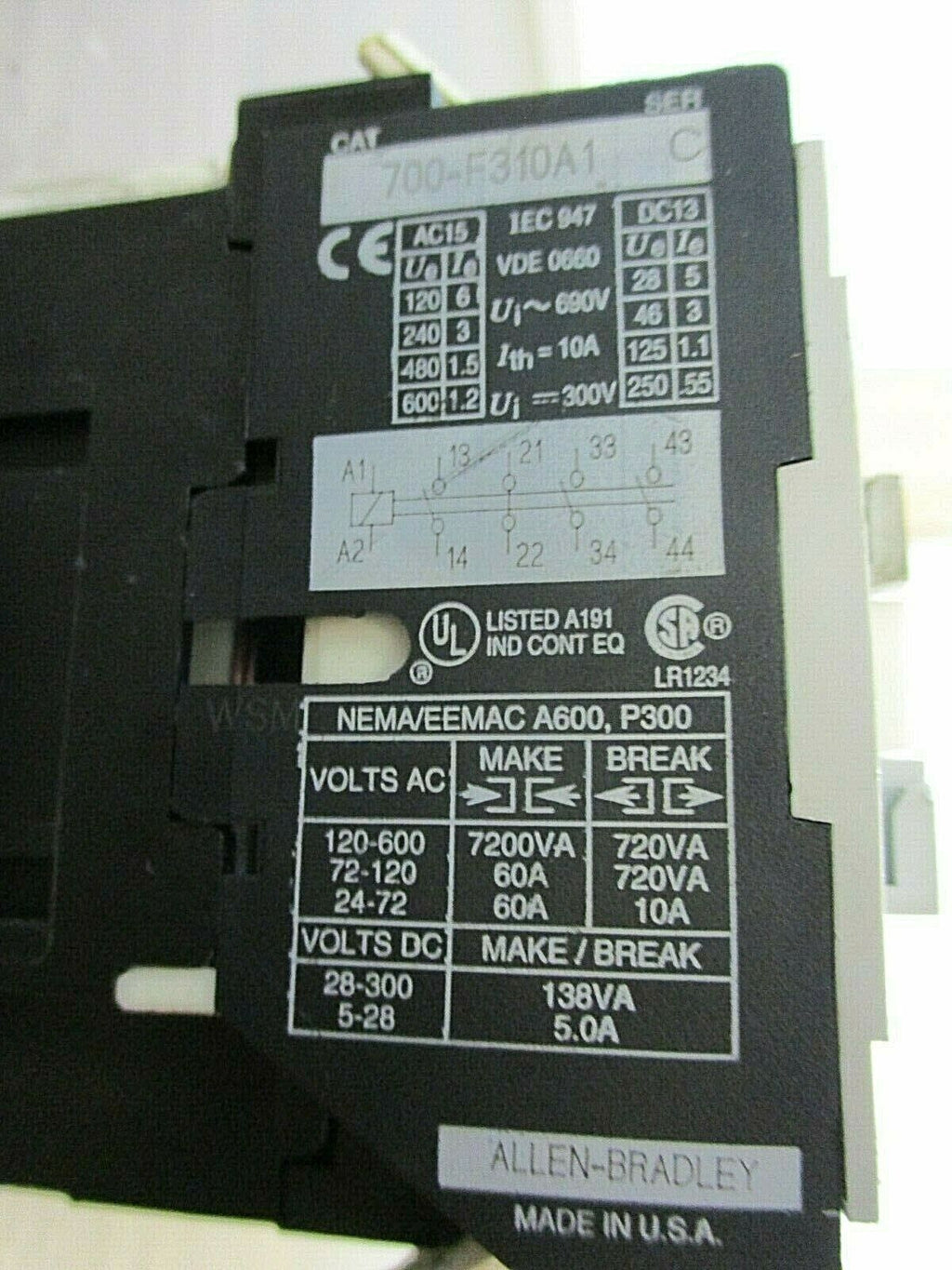 Allen-Bradley Contactor 700-F310A1 Ser. C 120V Coil Used_x000D...