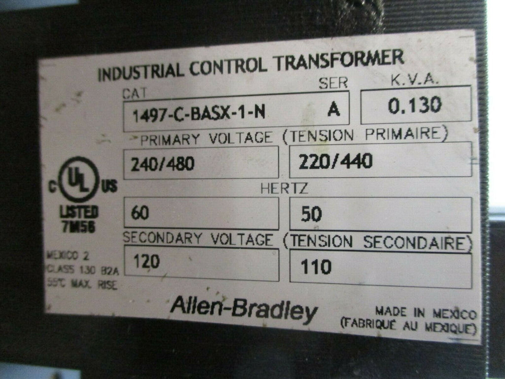 Allen-Bradley Control Transformer 1497-C-BASX-1-N Ser. A 0.130kVA Pri: 240/480V