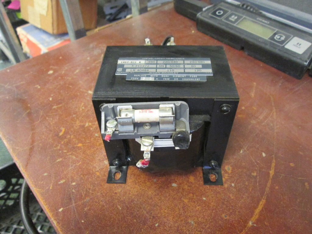 Allen-Bradley Control Transformer 1497-N11 0.350KVA Pri: 240/480V Sec: 120V Used Condition: UsedBrand: Allen-BradleyMPN: 1497-N11 Allen-Bradley Control Transformer 1497-N11 0.350KVA Pri: 240/480V Sec: 120V Used Allen-Bradley Control Transformer Part #: 1497-N11 0.350KVA Pri: 240/480V Sec: 120V UsedLOC 13F3-28 Allen-Bradley Control Transformer Part #: 1497-N11 0.350KVA Pri: 240/480V Sec: 120V Uséd LOC 13F3-28