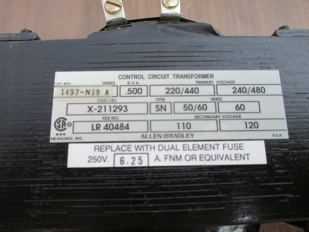 Allen-Bradley Control Transformer 1497-N19 0.500kVA Pri: 240/480V Sec: 120V Used