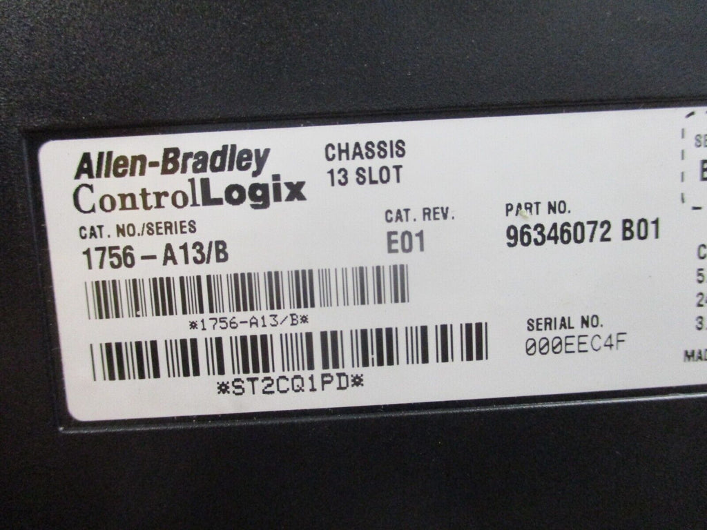 Allen-Bradley ControlLogix 13-Slot Chassis w/Power Supply 1756-A13/1756-PA75 Use Condition: UsedBrand: Allen-BradleyController Platform: ControlLogixMPN: 1756-A13/1756-PA75Model: Allen-Bradley ControlLogix 13-Slot Allen-Bradley ControlLogix 13-Slot Chassis w/Power Supply 1756-A13/1756-PA75 Use Allen-Bradley ControlLogix 13-Slot Chassis w/Power Supply Part #: 1756-A13/1756-PA75 Chassis Rev. E01 PS Rev. G02 UsedLOC: AB11-6662 / AB41M4 Allen-Bradley ControlLogix 13-Slot Chassis w/Power Supply Part #: 1756-A13/1756-PA75 Chassis Rev. E01 PS Rev. G02 Uséd LOC: AB11-6662 / AB41M4