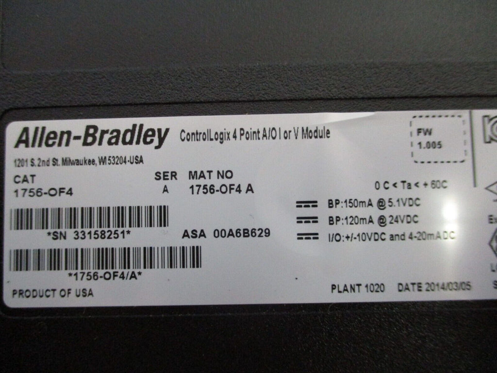 Allen-Bradley ControlLogix A/O I or V Module 1756-OF4 Ser. A F/W Rev. 1.005 4PT
