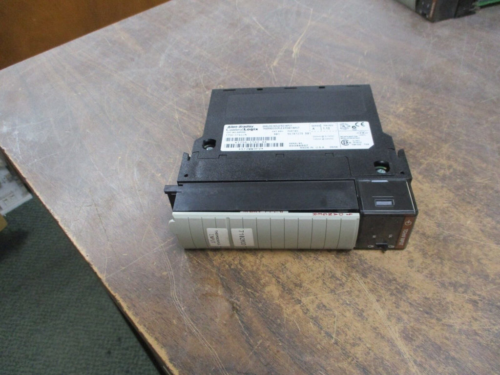 Allen-Bradley ControlLogix Analog Isolated Input Thermocouple Module 1756-IT6I/A Condition: UsedBrand: Allen-BradleyMPN: 1756-IT6I/A Allen-Bradley ControlLogix Analog Isolated Input Thermocouple Module 1756-IT6I/A Allen-Bradley ControlLogix Analog Isolated Input Thermocouple Module Part #: 1756-IT6I/ARev. N01F/W Rev. 1.126PT InputUsedLOC 18F4-37 Allen-Bradley ControlLogix Analog Isolated Input Thermocouple Module Part #: 1756-IT6I/A Rev. N01 F/W Rev. 1.12 6PT Input Uséd LOC 18F4-37